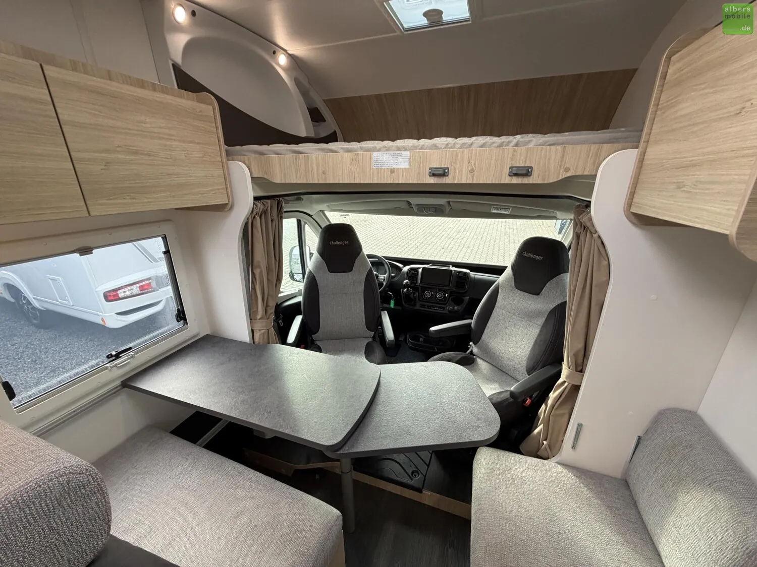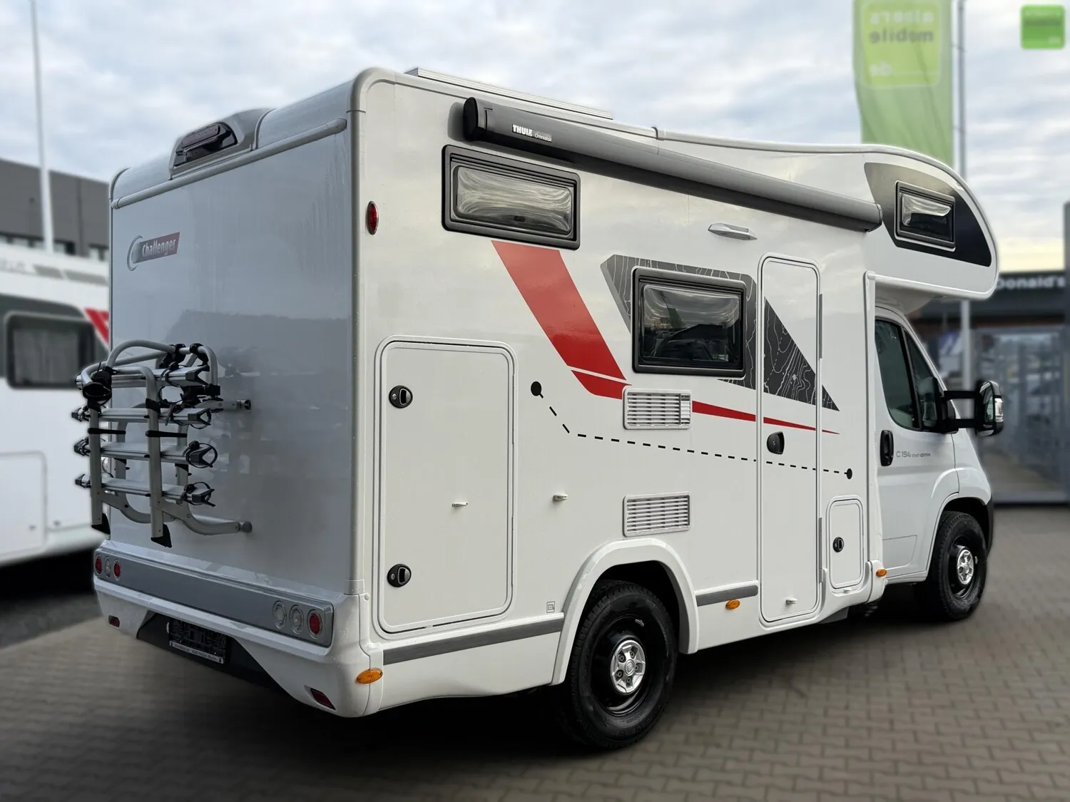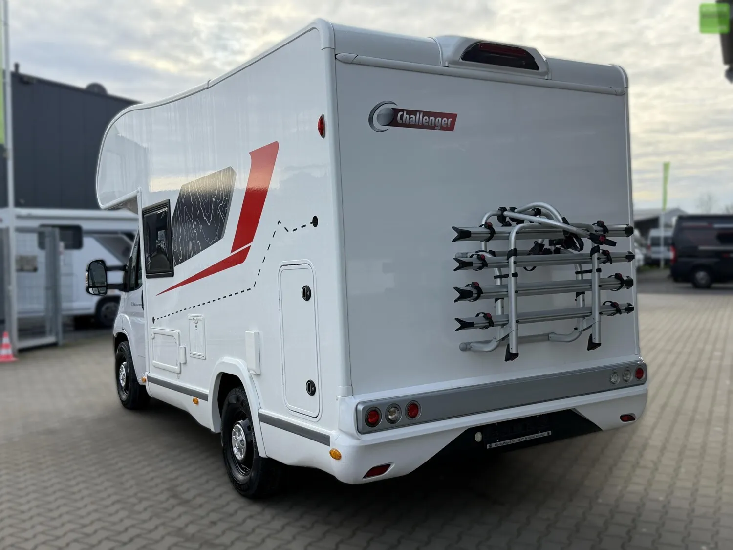 Challenger übertrifft sich mit diesem Alkoven, einer Glanzleistung, sowohl kompakt (unter 6 m) als auch familiengerecht. Das ideale Reisemobil für z.B. Radler, die ihre Fahrräder in der höhenverstellbaren Garage unterbringen können.