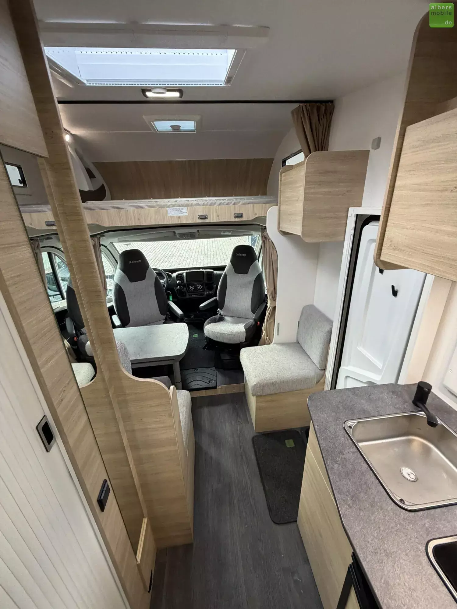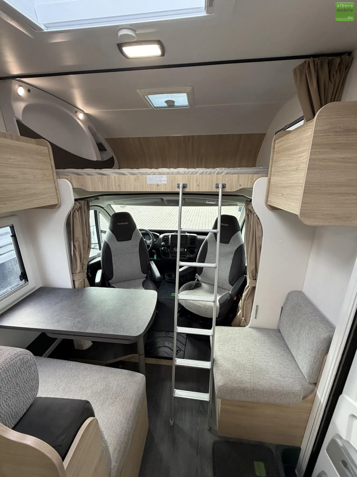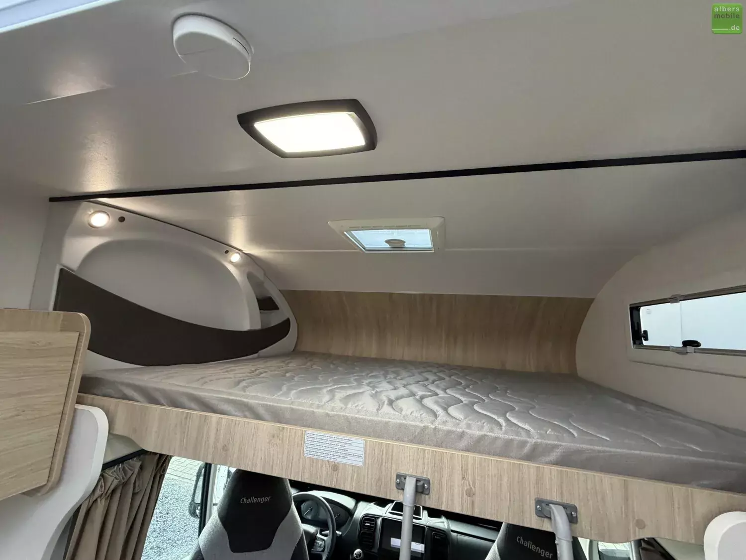 Challenger übertrifft sich mit diesem Alkoven, einer Glanzleistung, sowohl kompakt (unter 6 m) als auch familiengerecht. Das ideale Reisemobil für z.B. Radler, die ihre Fahrräder in der höhenverstellbaren Garage unterbringen können.