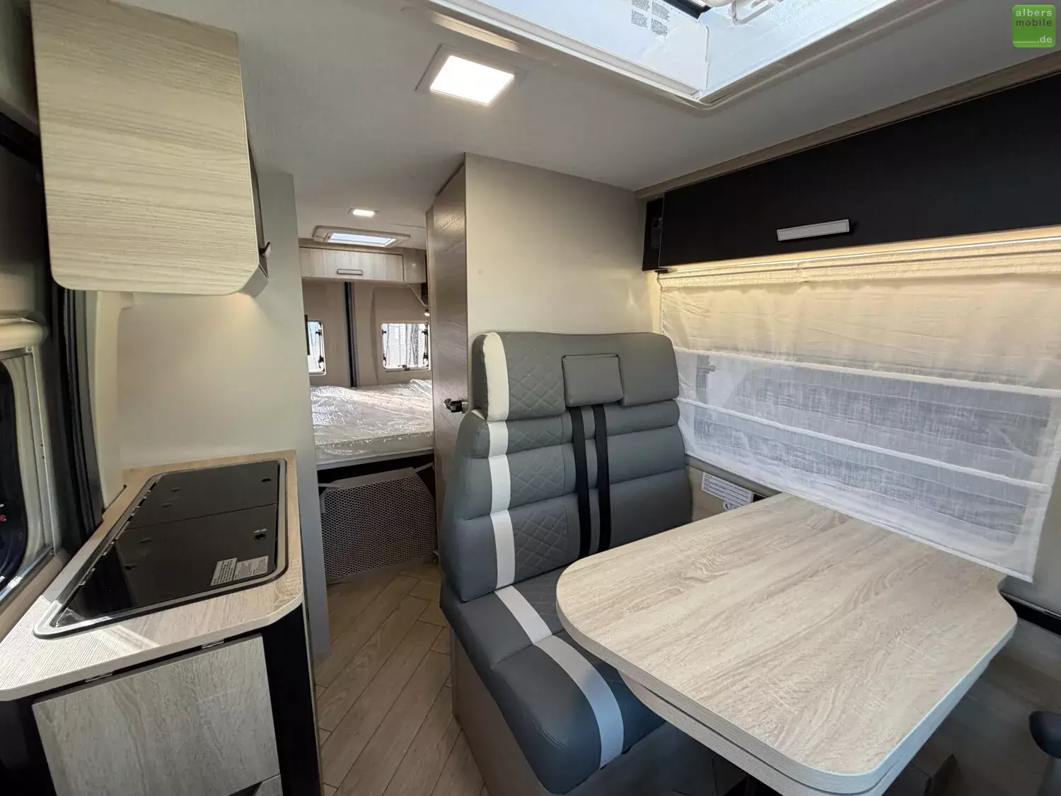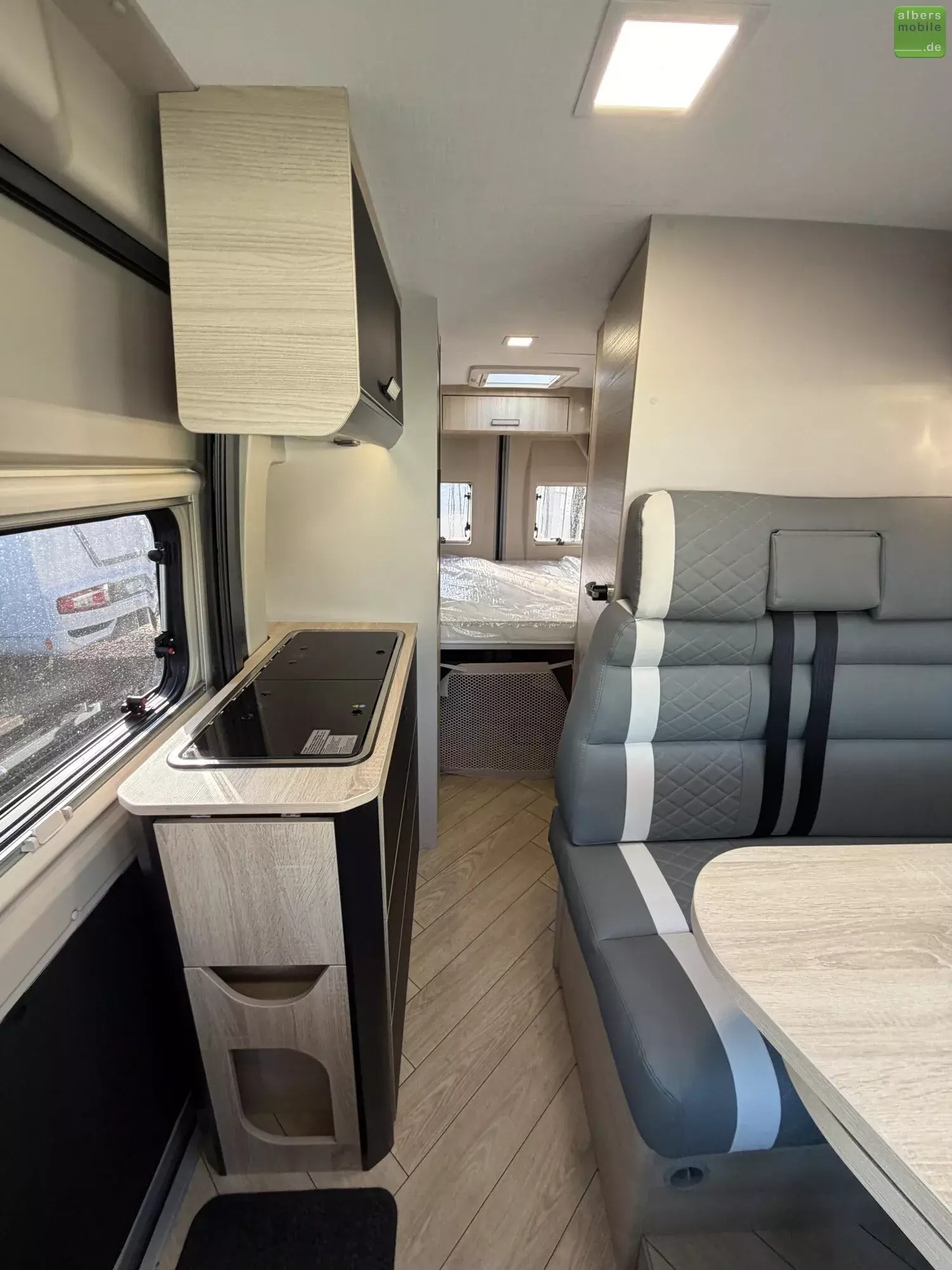 Der legendäre Grundriss, den die Van-Liebhaber bevorzugen: Der kompakte (5,99 m) V114 kommt überall durch, in der Stadt wie auf dem Land! Mit seinem gemütlichen Wohnbereich, funktionalem Bad & Küche begeistert er Sie auch durch sein Doppelbett im Heck, das für mehr Platz angehoben werden kann.