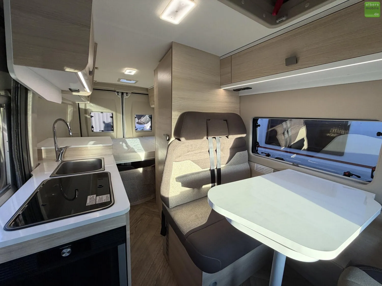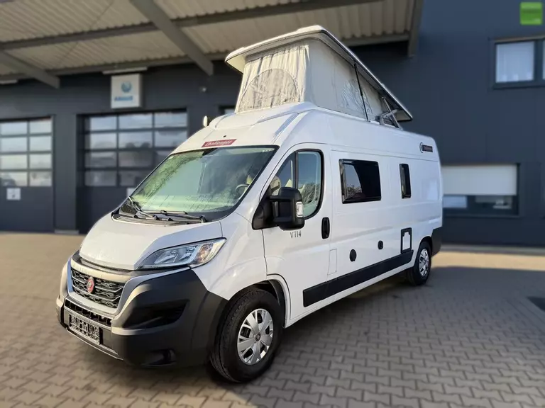 Der legendäre Grundriss, den die Van-Liebhaber bevorzugen: Der kompakte V114 kommt überall durch, in der Stadt wie auf dem Land! Mit seinem gemütlichen Wohnbereich, funktionalem Bad & Küche begeistert er Sie auch durch sein Doppelbett im Heck, das für mehr Platz angehoben werden kann.