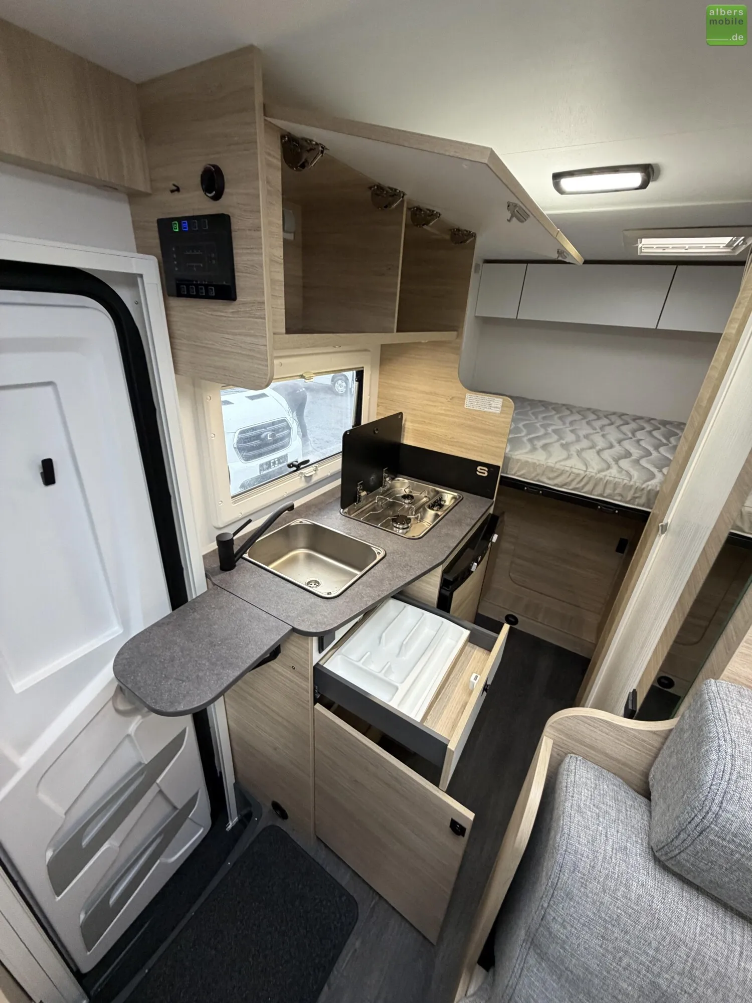 Obgleich so kompakt und wendig wie ein Van, bietet der Teilintegrierte S194 mehr Innenraum und eine bessere Isolierung. Er verfügt über zahlreiche Staufächer, ein modulares Badezimmer sowie ein "Schmetterlings-Bett", das nicht nur den Zugang zum Stauraum, sondern auch ein Vergrößern der Garage ermöglicht.