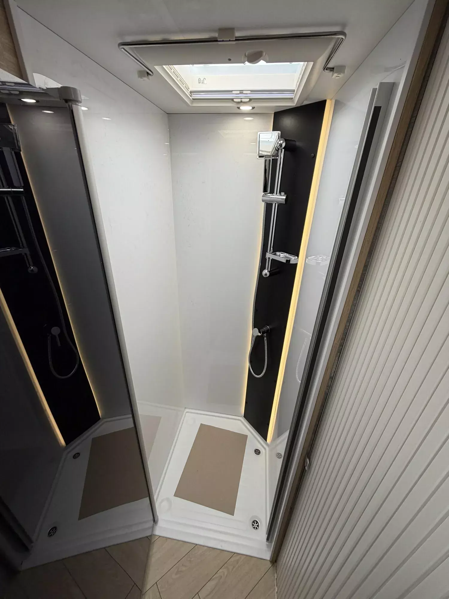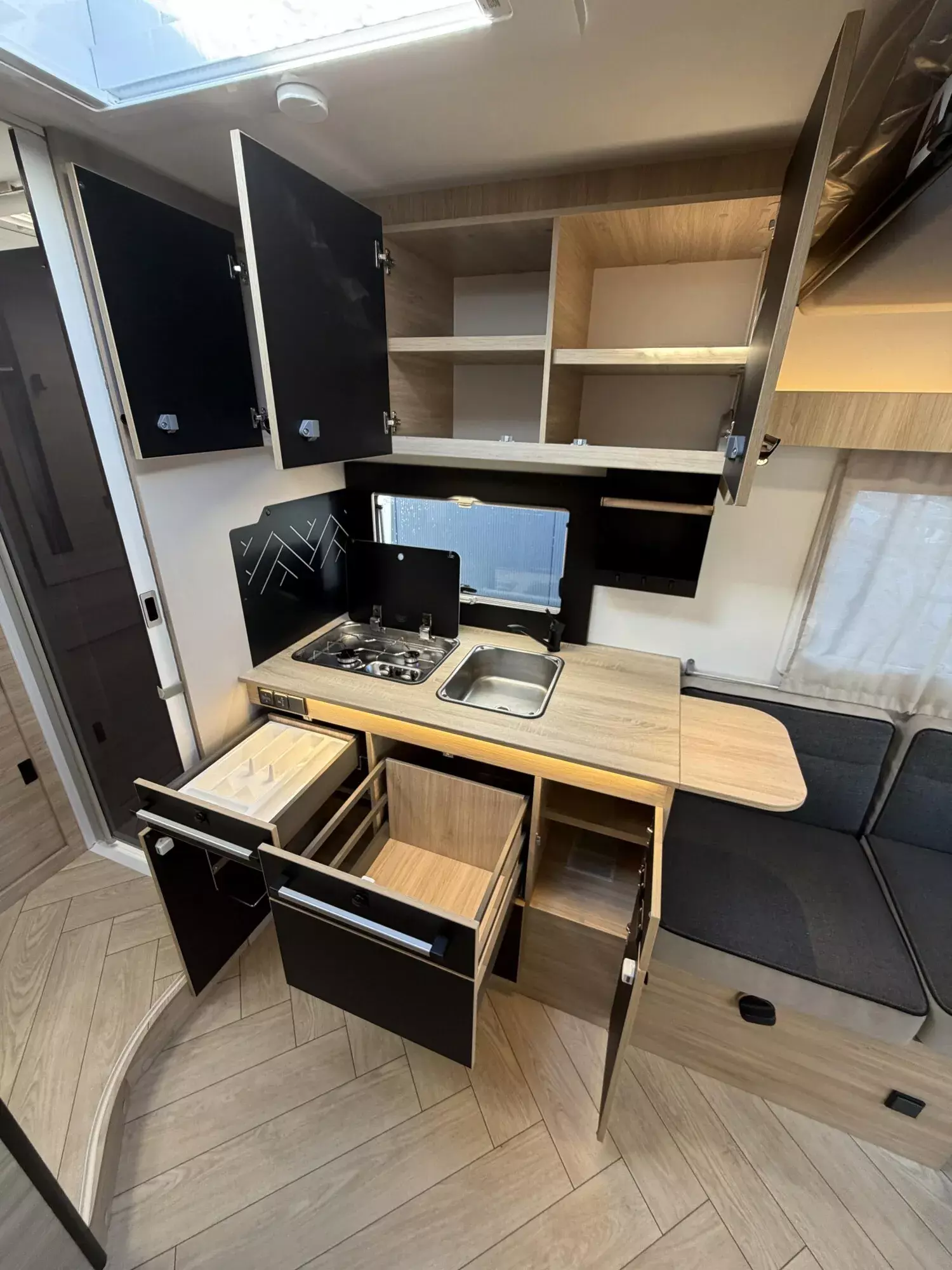 - Luxus-Aufbautür mit Fenster und zwei Sicherheitsschlössern, Zentralverriegelung Fahrerhaus/Wohnraum