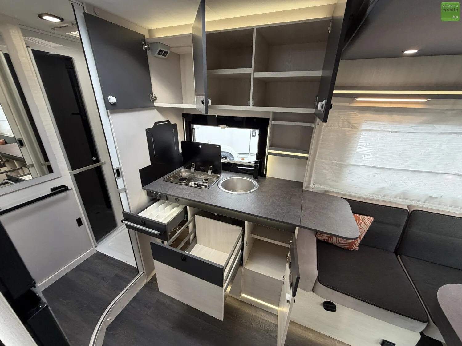 Der 260 wird Sie durch sein 160 cm breite Hubbett und seinen unglaublichen Wohnbereich begeistern und das alles bei nur 6,99 m.