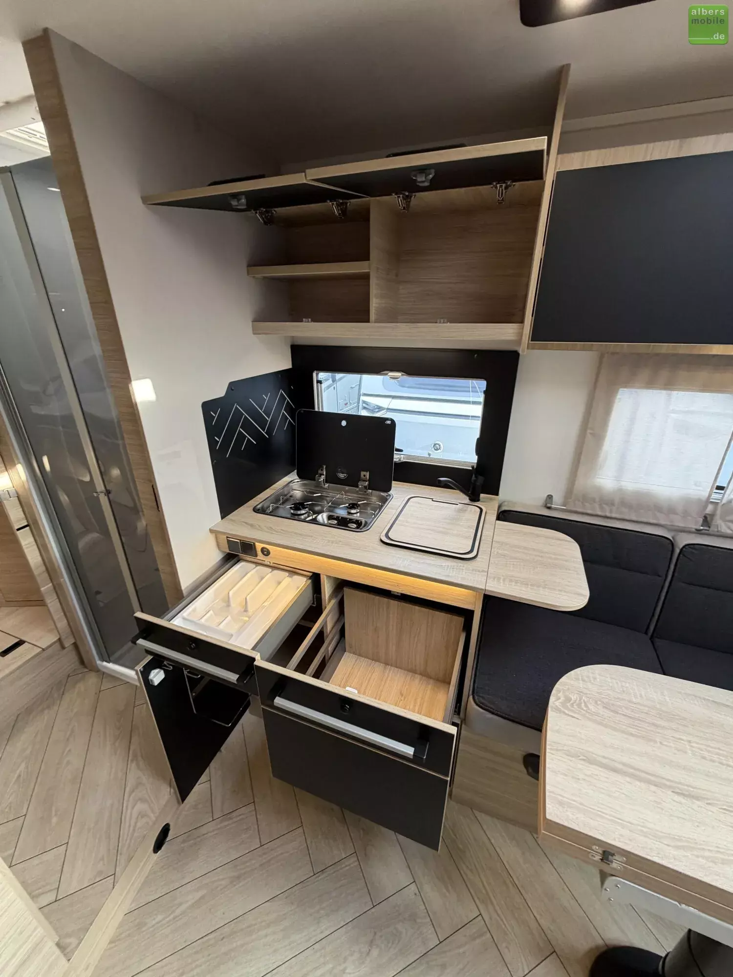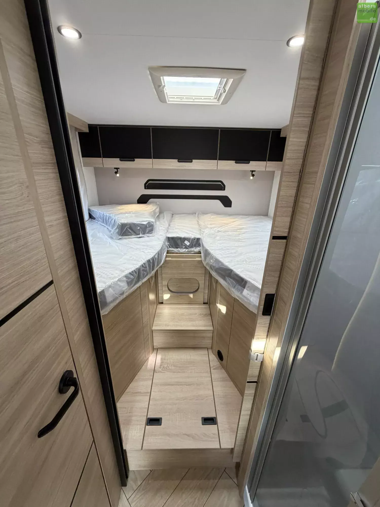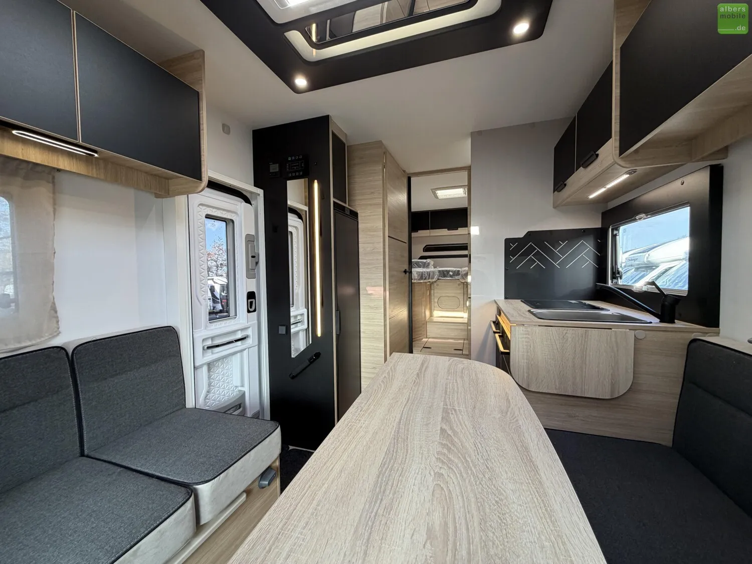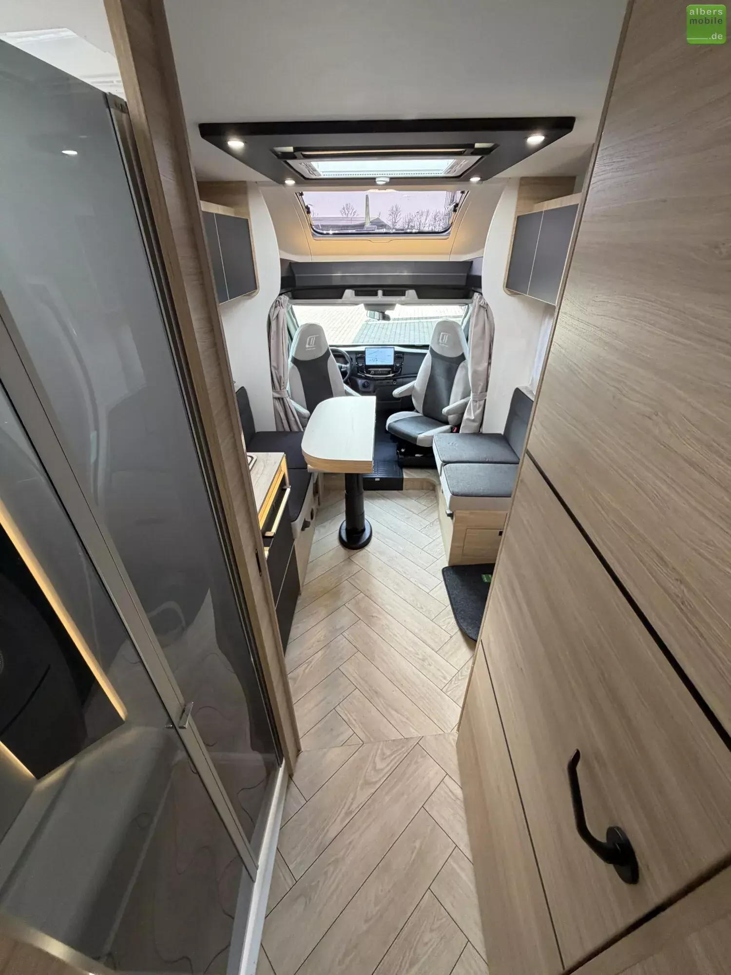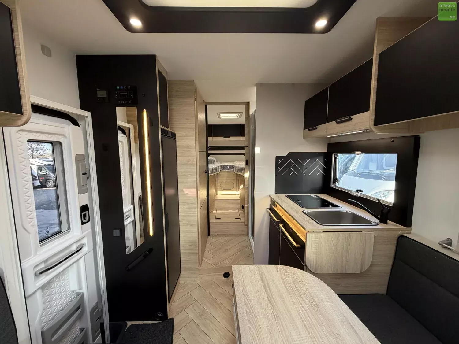 Der Teilintegrierte 317 vereint Raum, Komfort und Stil mit zwei 90?cm breiten Einzelbetten, die sich zu einem Kingsize-Bett verbinden lassen, und einer großzügigen Face-to-Face-Sitzgruppe - ideal zum Entspannen oder gemeinsamen Essen. Das doppelt abgetrennte Bad trennt Wohn- und Schlafbereich vollständig und sorgt so für mehr Privatsphäre und Komfort. Ein Modell für anspruchsvolle Reisende, die Wert auf Bewegungsfreiheit und ein stilvolles Interieur legen.