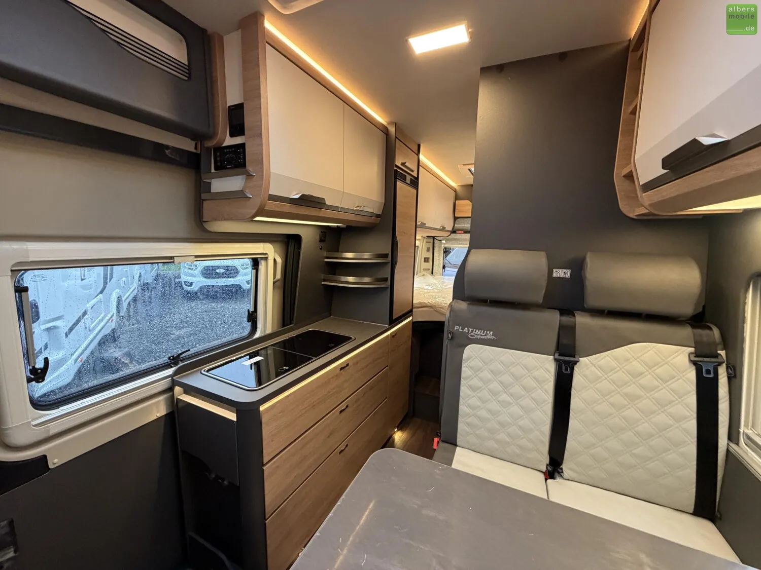 - Dinettensitzbank-Verbreiterung durch Seitenauszug (auch während der Fahrt)