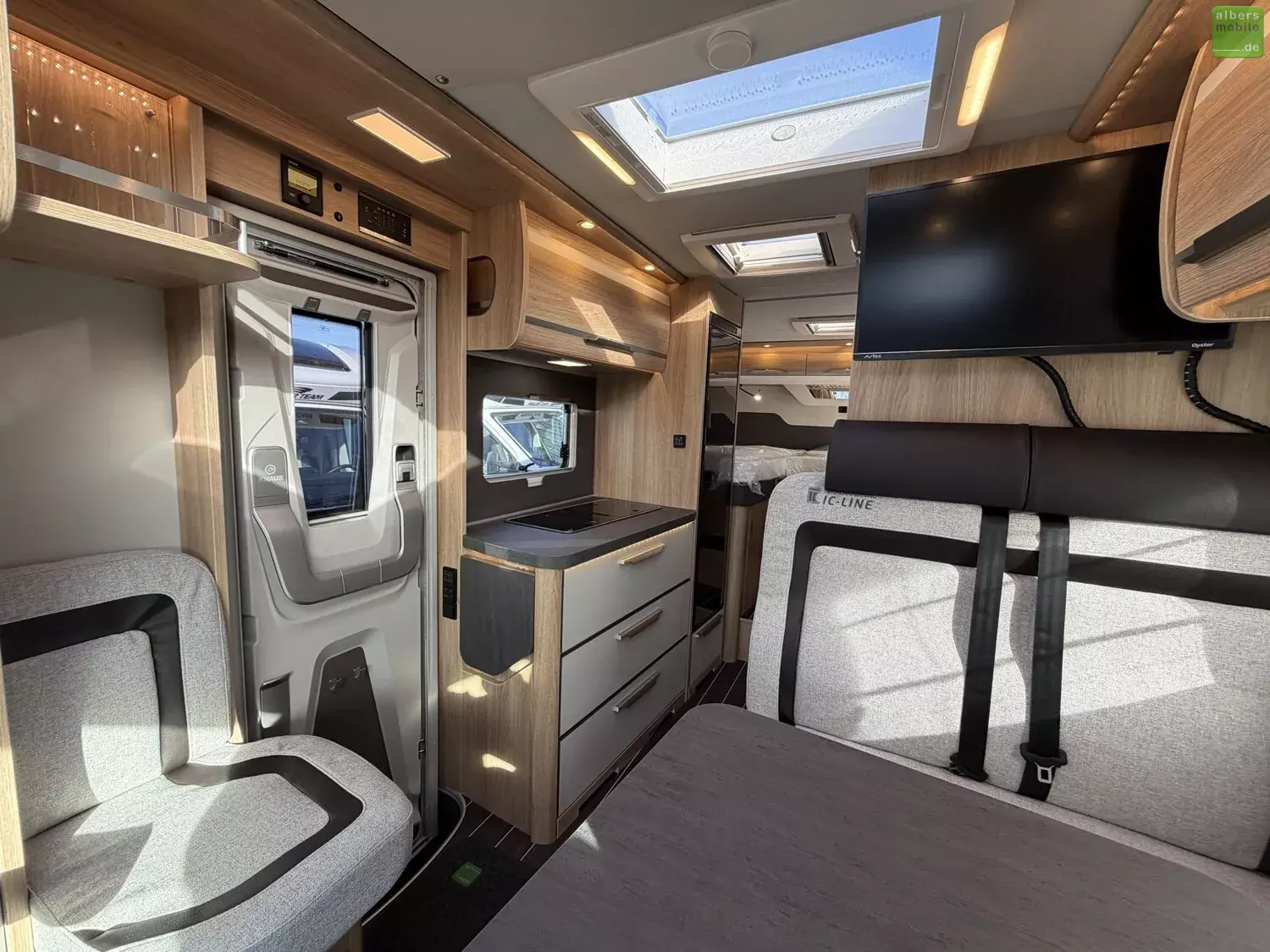 - Vernetzbares Elektronik-System inkl. zentralem Control-Panel mit Anzeige für Status der Batterien, Frisch- und Abwassertanks und Stromanschluss