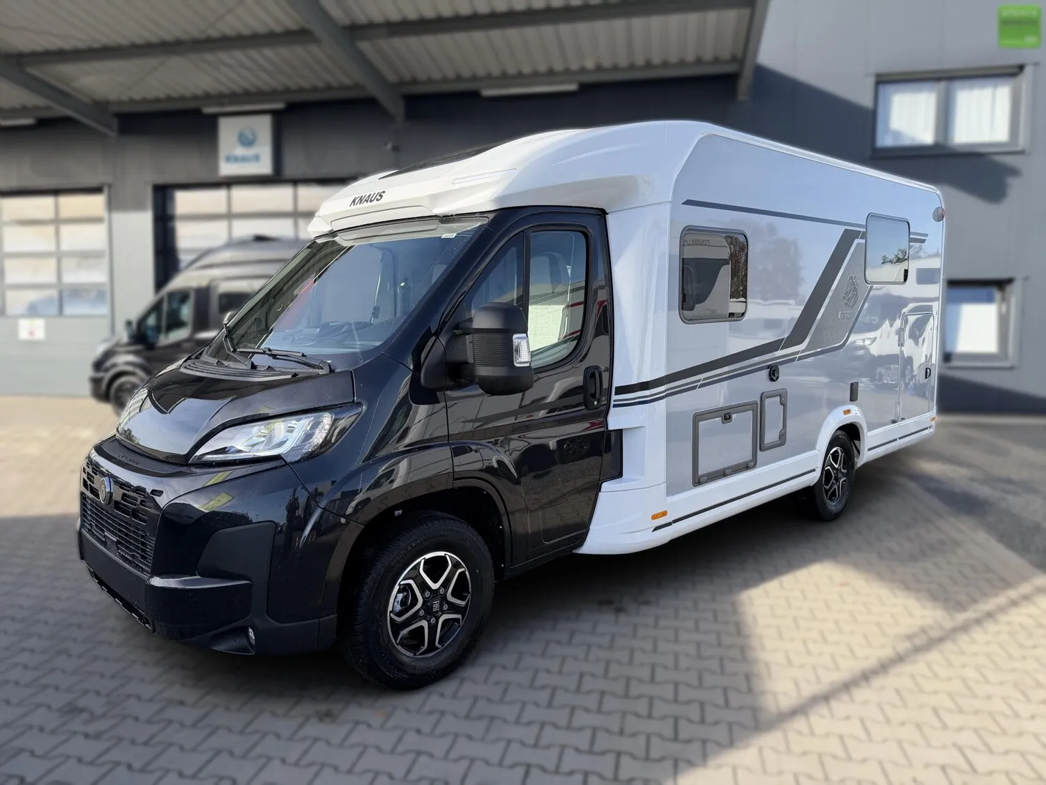 - KNAUS Embleme im Bug und im Heck, schwarz/chrom