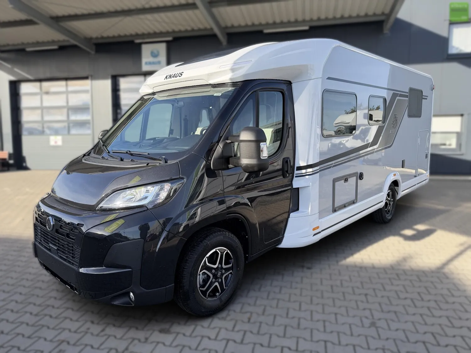 - KNAUS Embleme im Bug und im Heck, schwarz/chrom