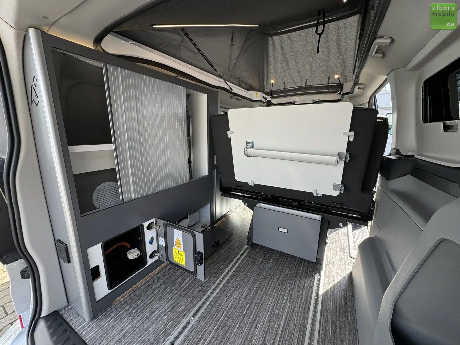 - Integrierter Gasherd (2 Flammen)