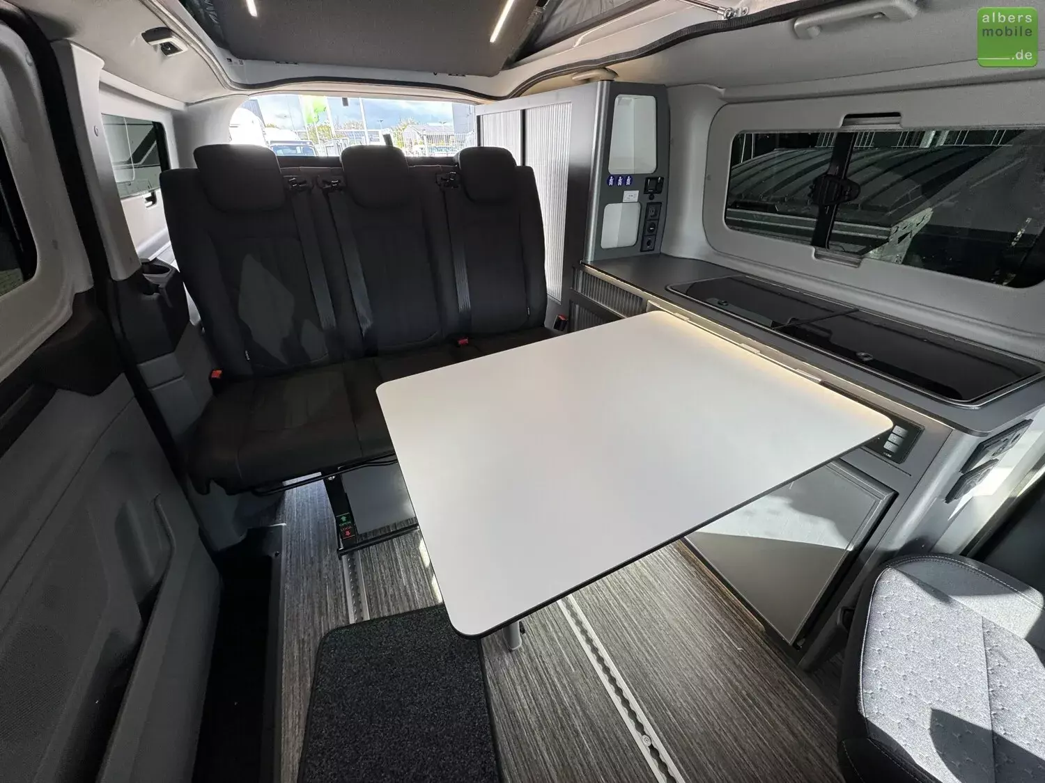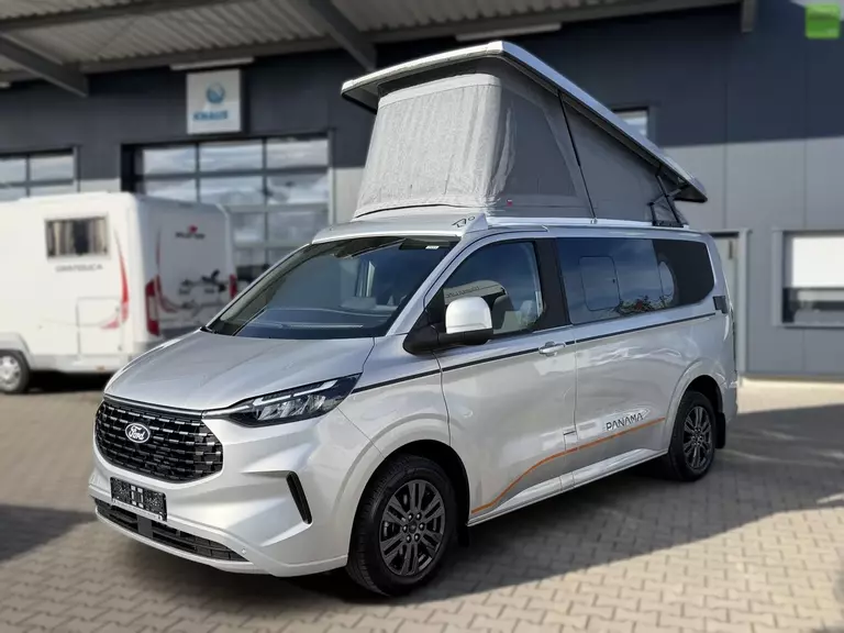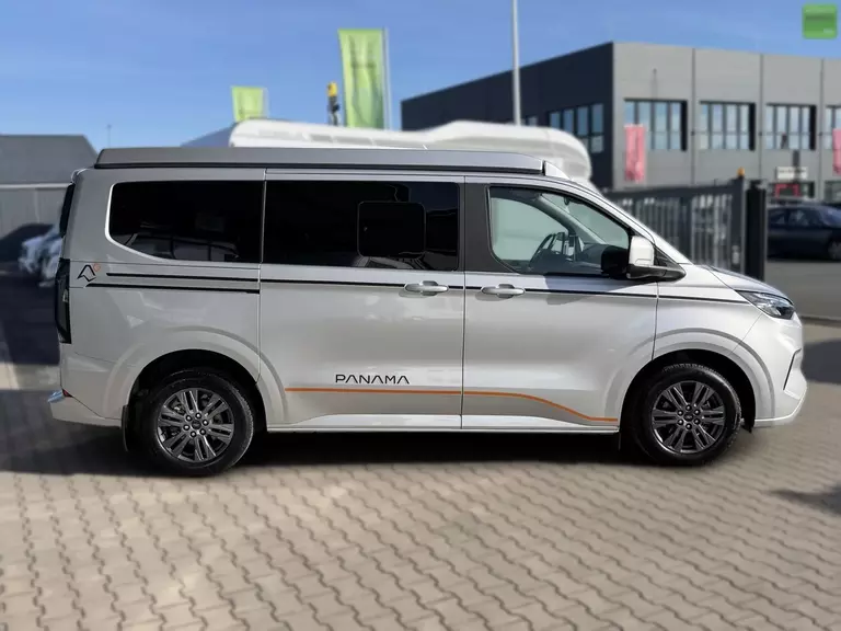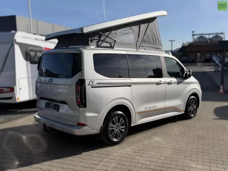 Wir bieten Ihnen einen Panama Peak P10 + auf der neuen Ford Tourneo Custom Generation mit Aufstelldach, 5 Sitzplätzen und bis zu 4 Schlafplätzen an.