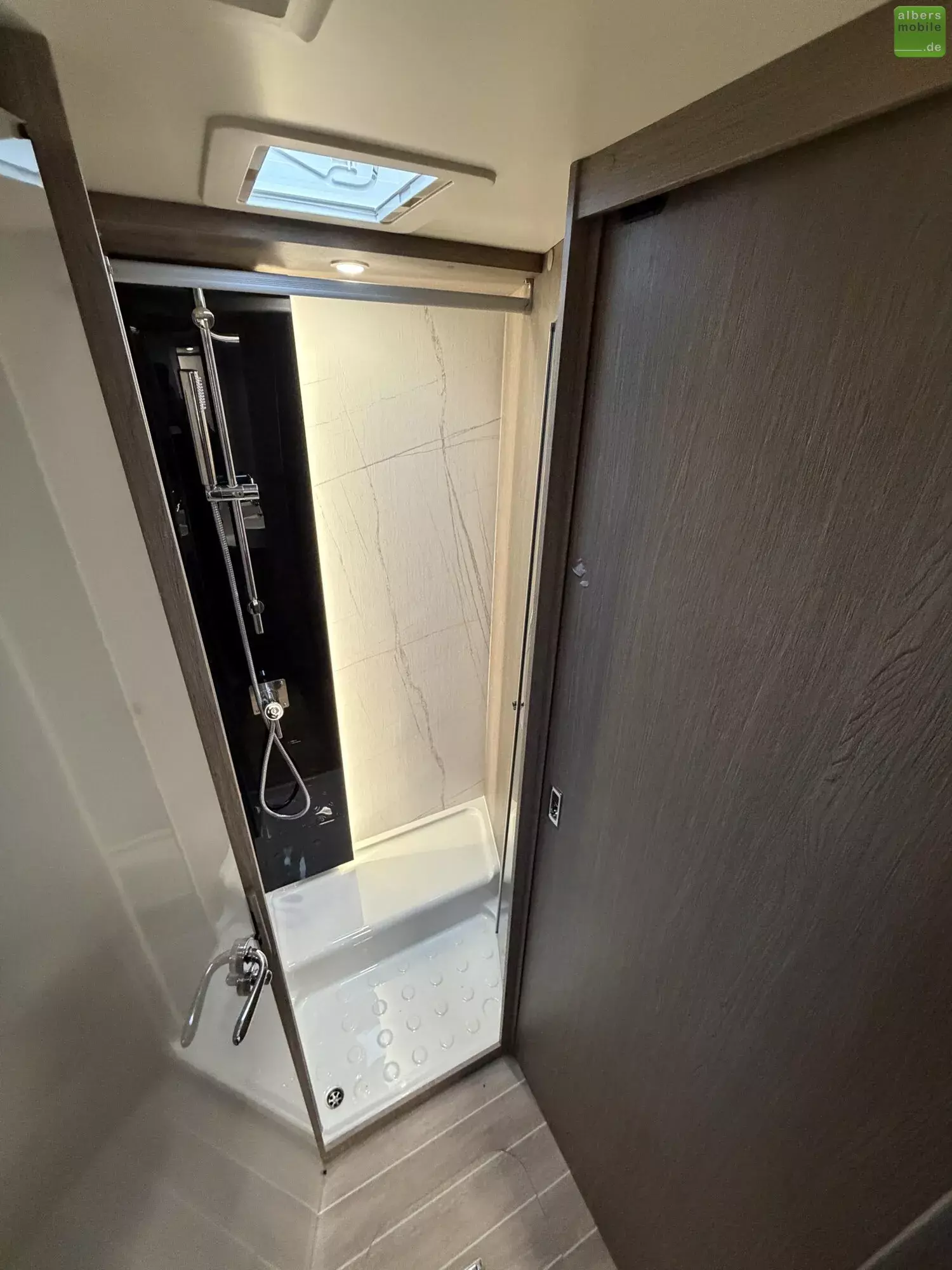 - Dusche mit festen Türen