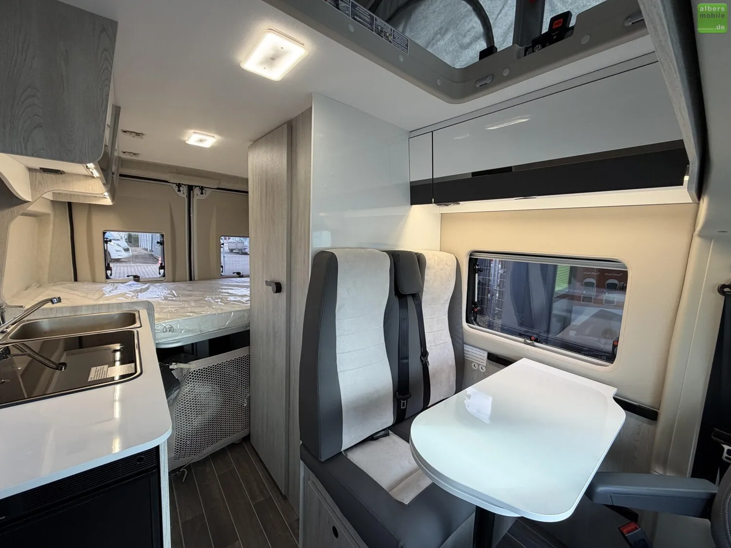 Der Roller Team Livingstone GO bietet durchdachten Komfort auf jeder Reise: ergonomische Sitze mit Rückenlehne, ein integriertes Edelstahlspülbecken mit Mischarmatur sowie ein 2-Flammen-Kochfeld mit praktischer Glasabdeckung. Für erholsamen Schlaf sorgen Betten mit Lattenrost und ?Sleep Comfort?-Matratzen aus atmungsaktivem Gewebe.