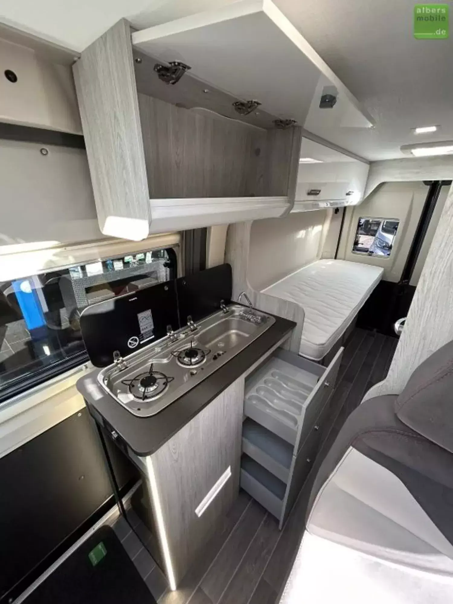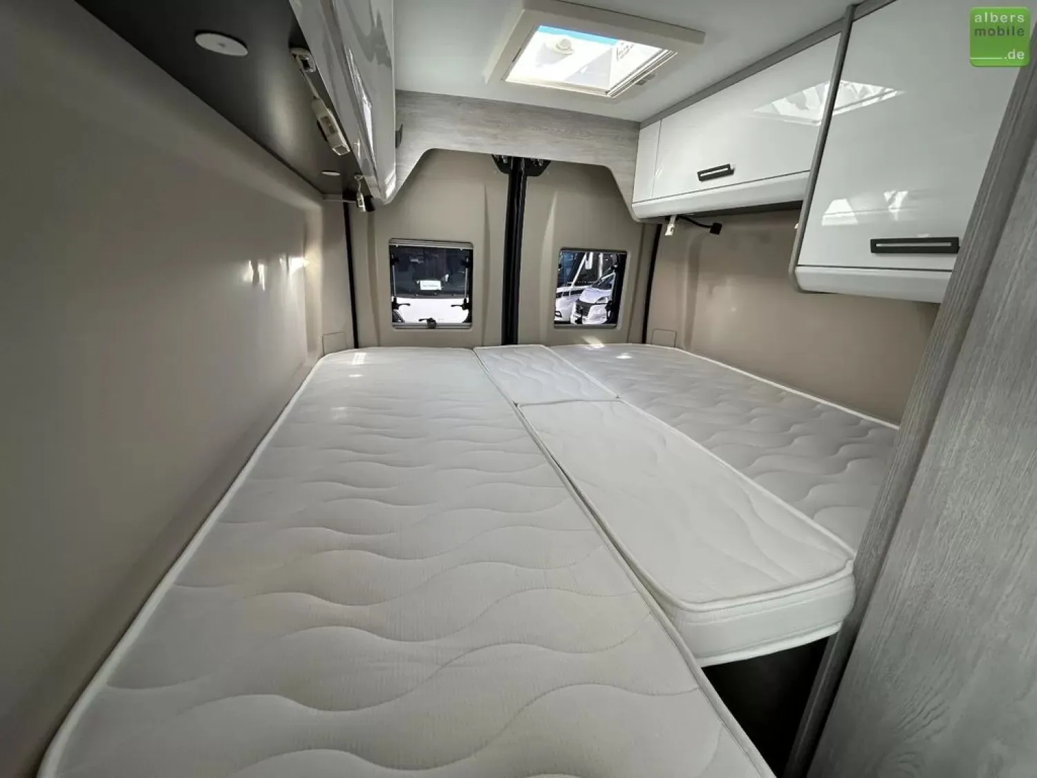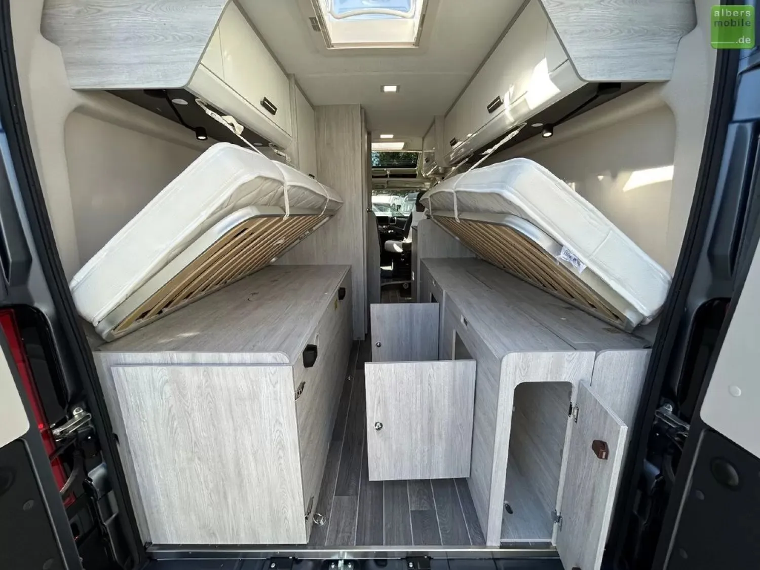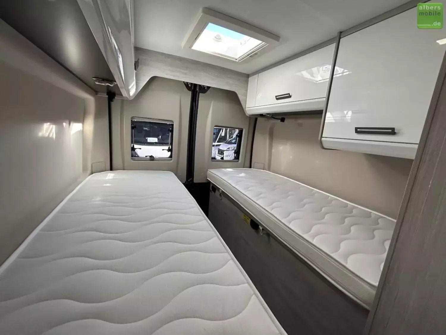 - Zusätzlich zwei neue eingeschweißte, ungenutze Matratzen für die beiden Längsbetten