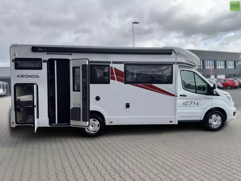 Wir bieten Ihnen einen Roller Team Kronos 274 TL mit einem Hubbett, Etagenbetten und Automatikgetriebe aus dem Modelljahr 2026. Ein Teilintergierter von Roller Team mit bis zu 6 zugelassenen Sitzplätzen, Face-to-Face Sitzgruppe und einer Garage mit variablem Volumen mit herausnehmbaren hinterem, unteneren Bett.