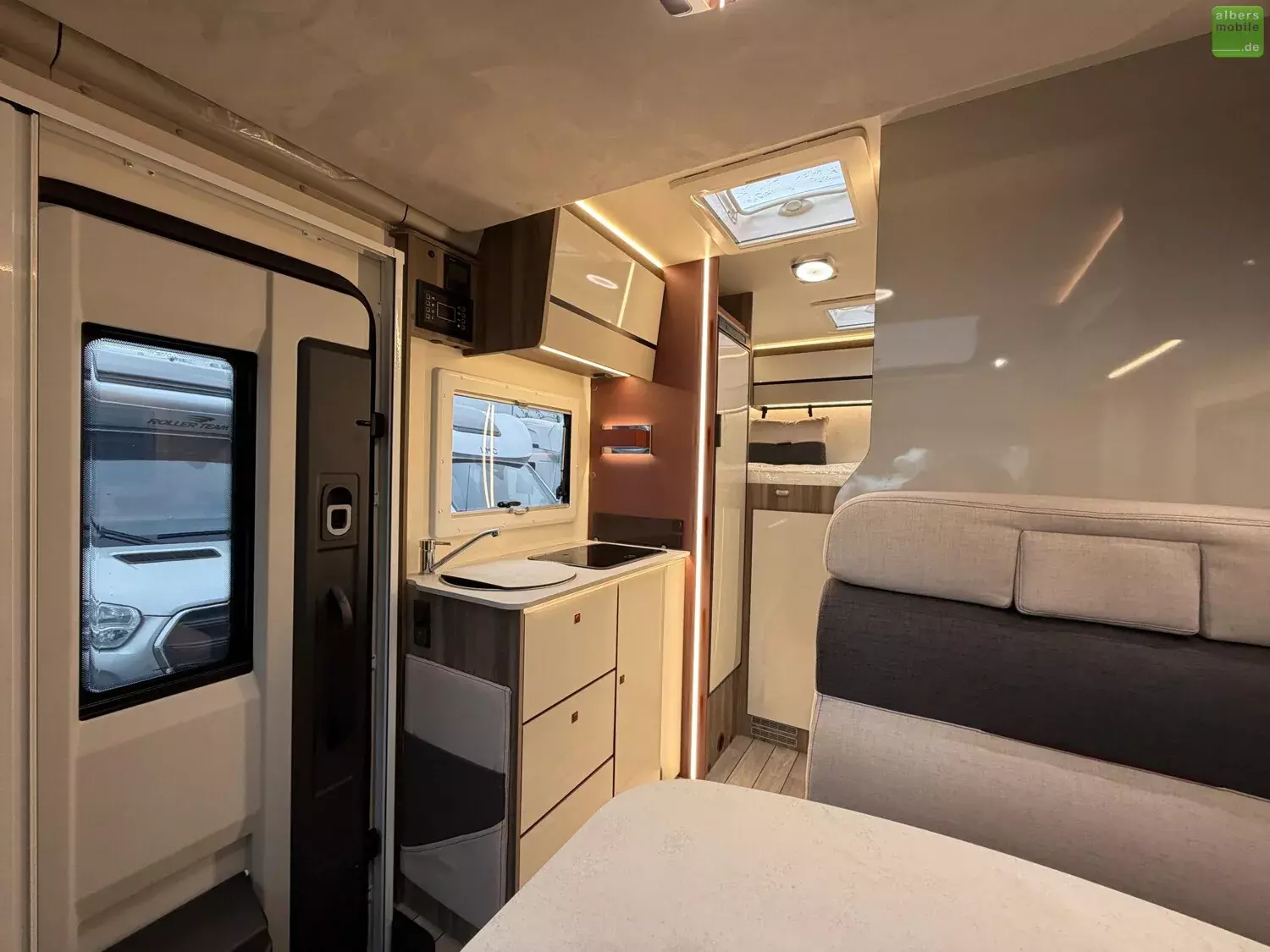 Wir bieten Ihnen einen neuen Roller Team Kronos Fit 291 TL mit einem Querbett im Heck, Hubbett und Automatikgetriebe aus dem Modelljahr 2026.
