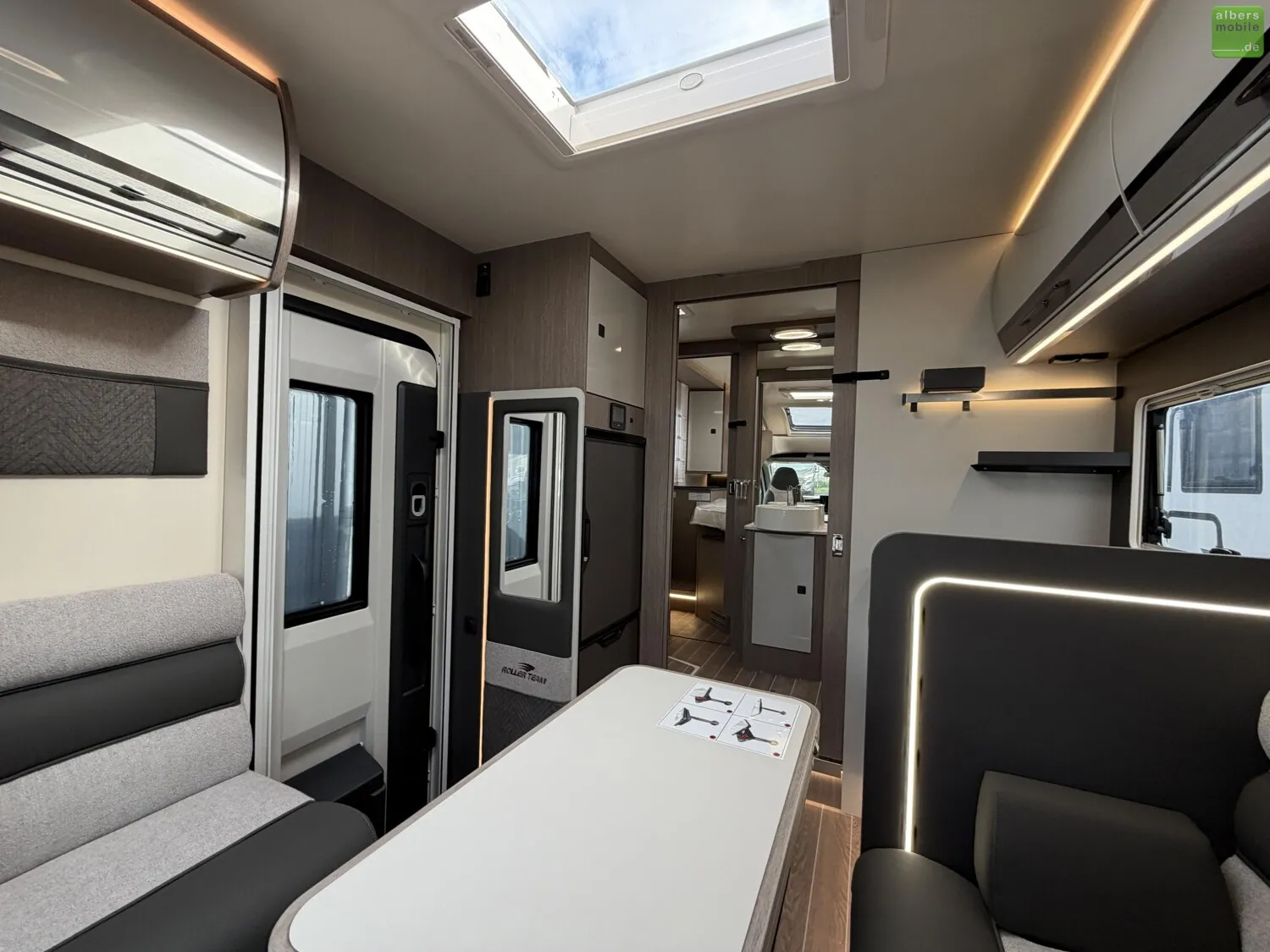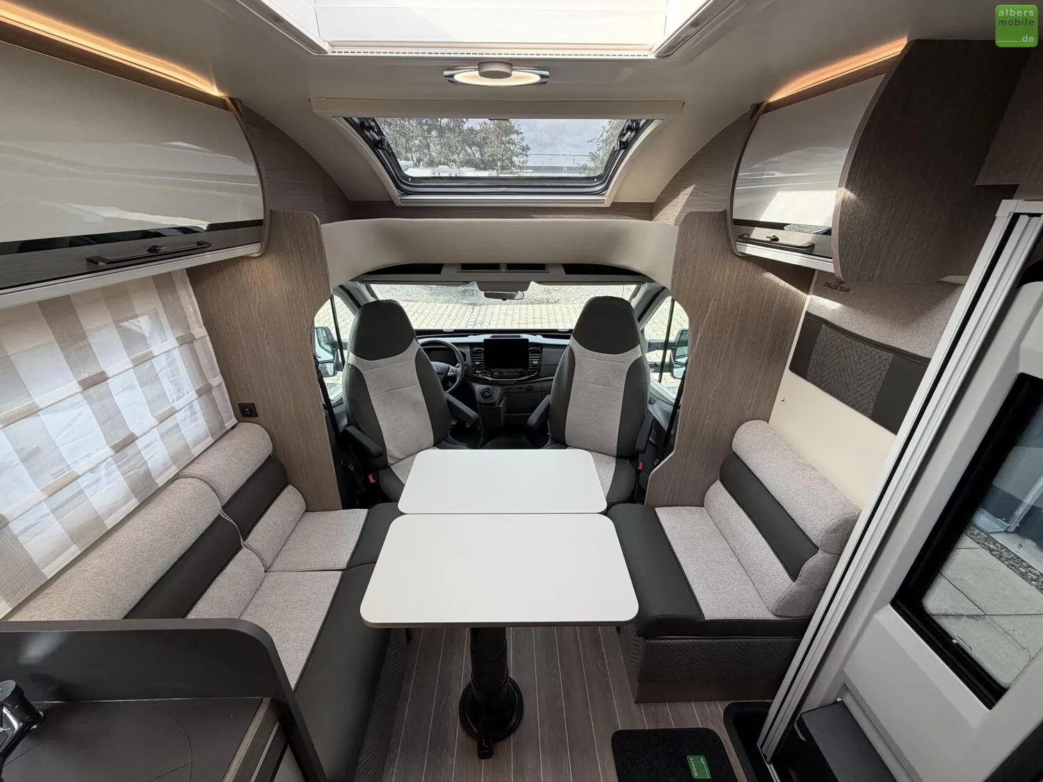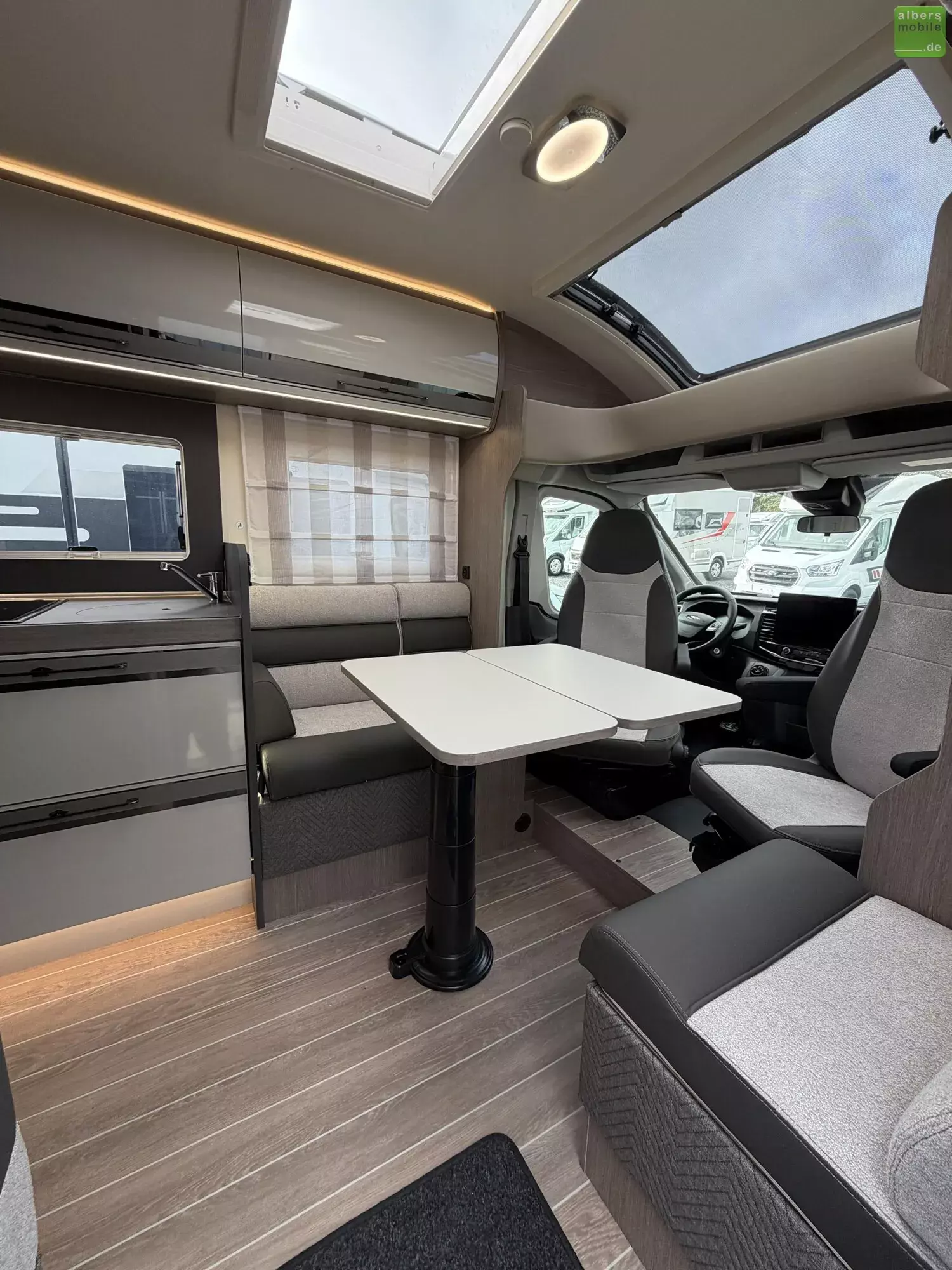 Darüber hinaus umfasst das Reisemobi lneben dem außergewöhnlichen Badezimmerkonzept und Face-to-Face-Sitzgruppe folgende Ausstattung: