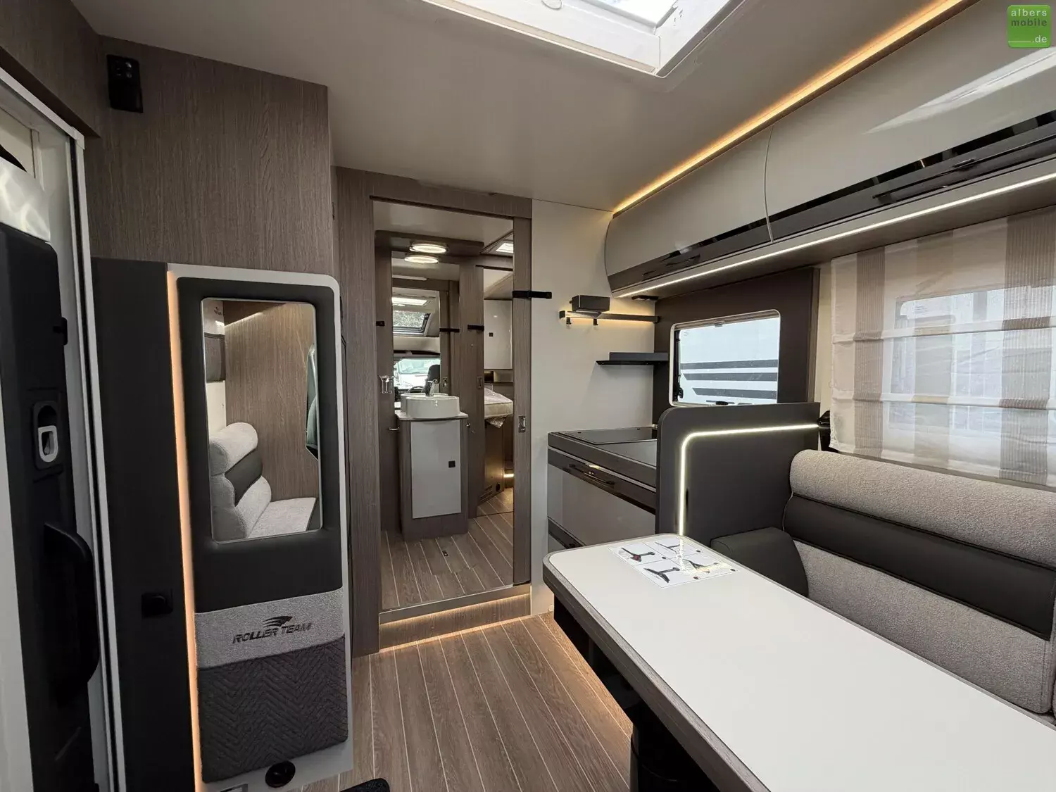 Wir bieten Ihnen einen neuen Roller Team Zefiro 266 P mit einem Queensbett und einem Automatikgetriebe aus dem Modelljahr 2026. Das besonders geräumige Badezimmer mit separater Dusche und Trenntüren zeichnen das Reisemobil aus.