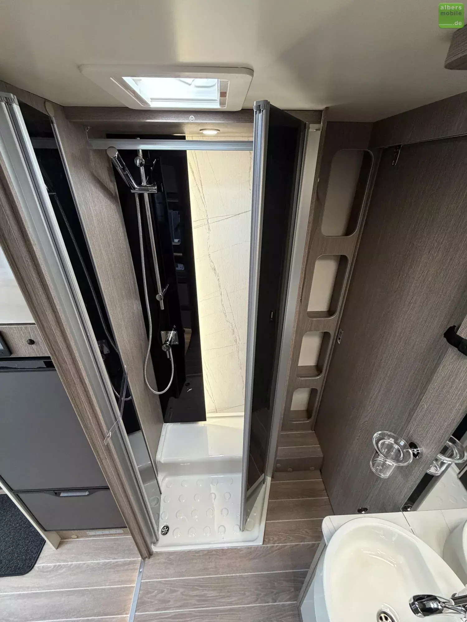 - Dusche mit festen Türen