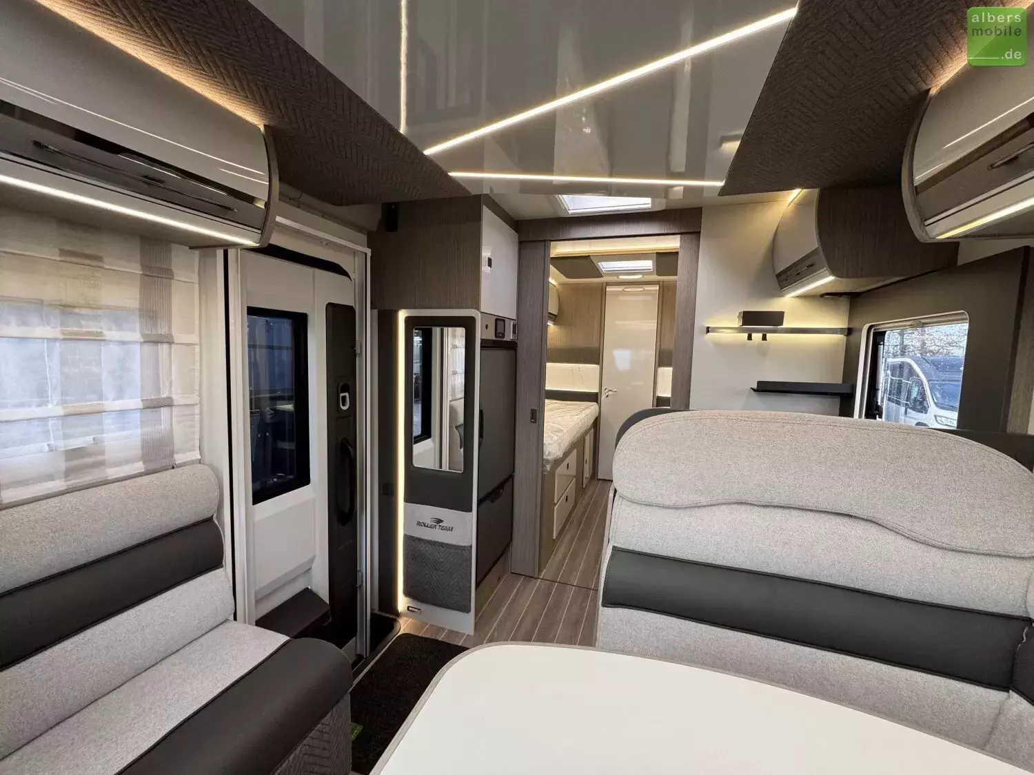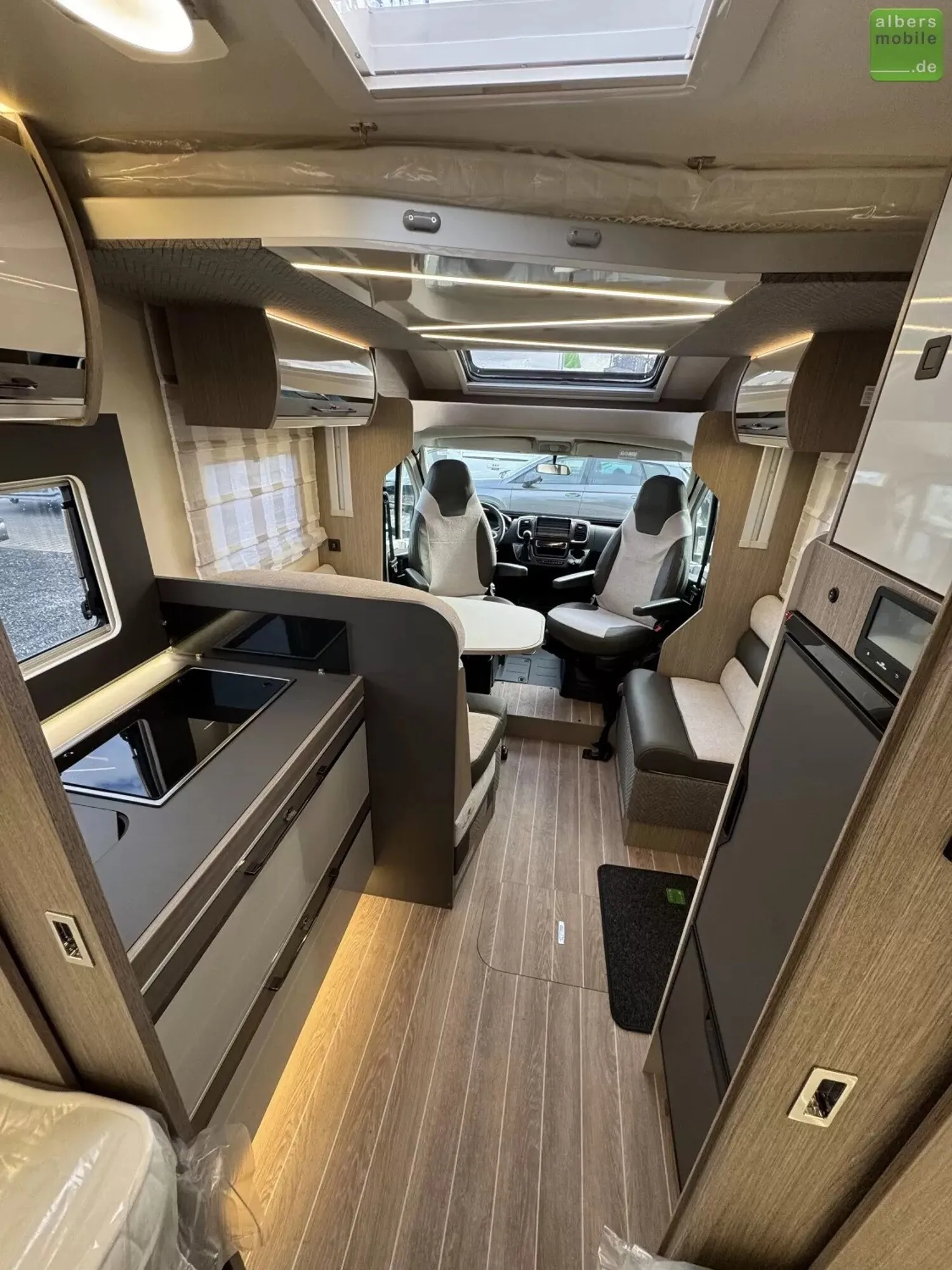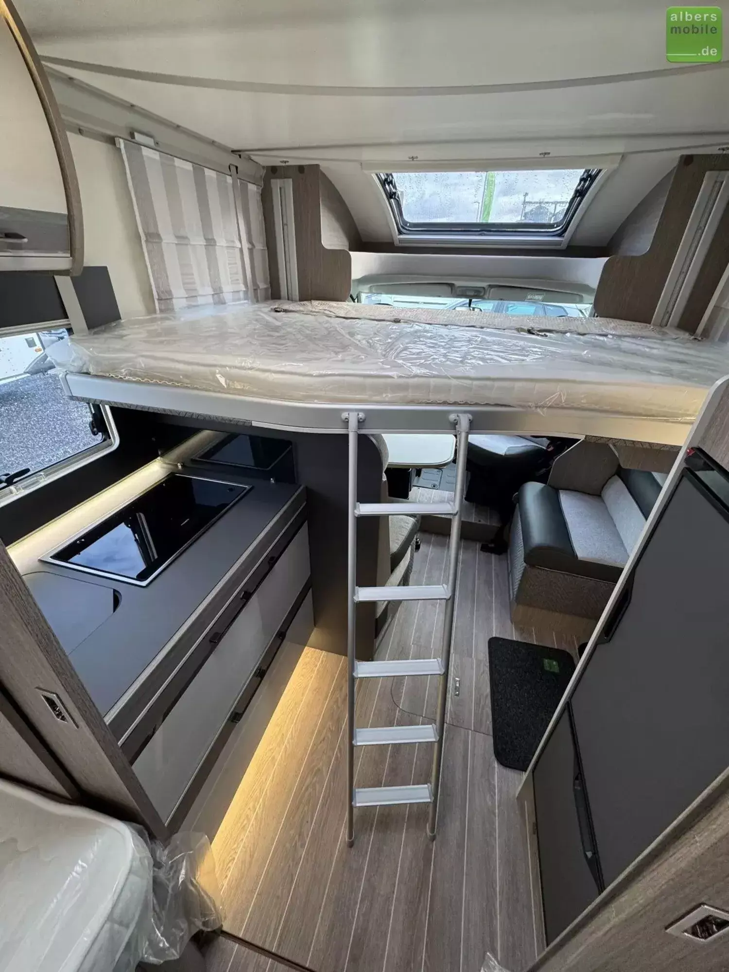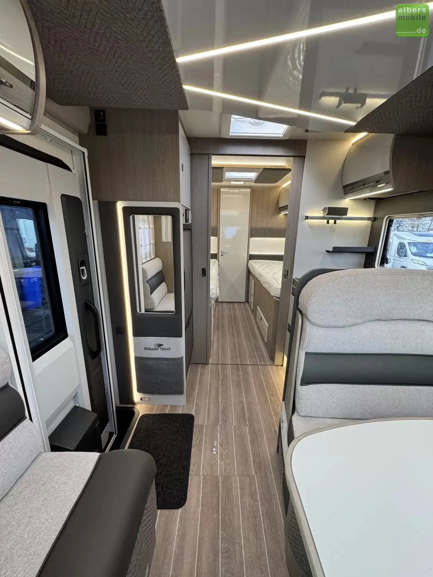 Der ideale Teilintegrierte für Familien mit viel Platz und Stauraum. Mit Einzelbetten im Heck und separatem Toiletten-/Duschbereich.