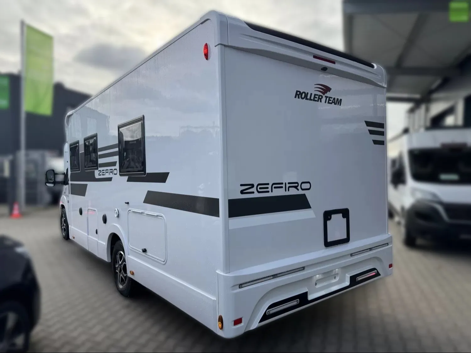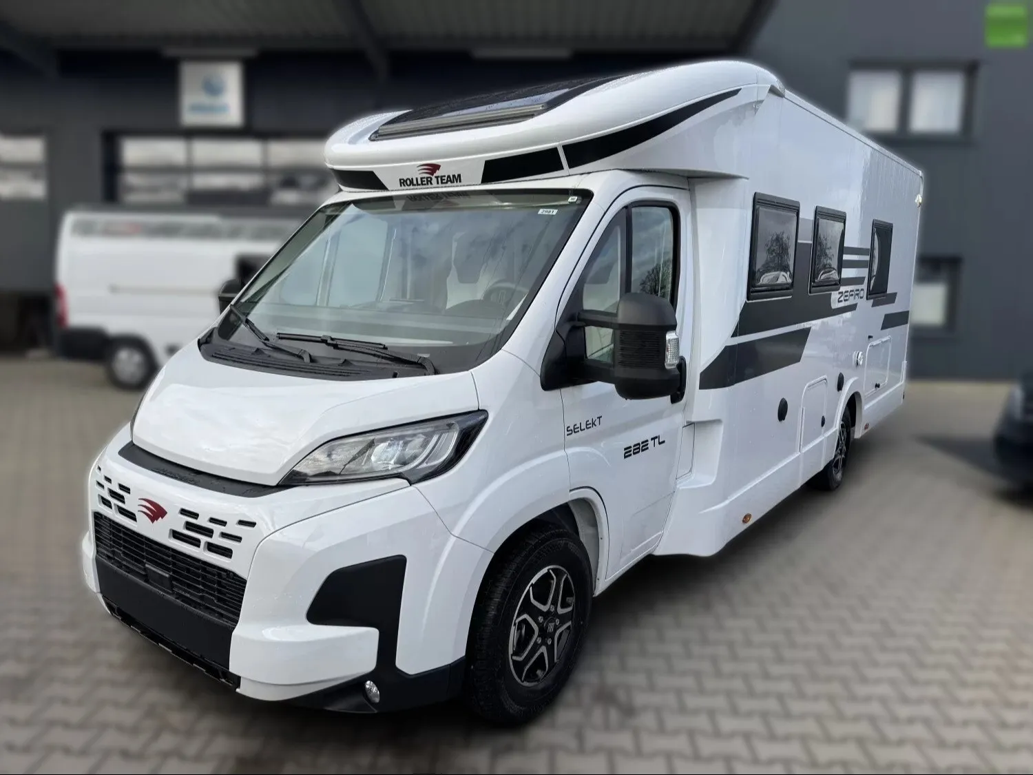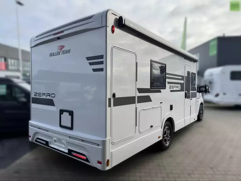Wir bieten Ihnen einen neuen Roller Team Zefiro 282 TL mit Einzelbetten, Hubbett, einem Heckbad und einem Automatikgetriebe.