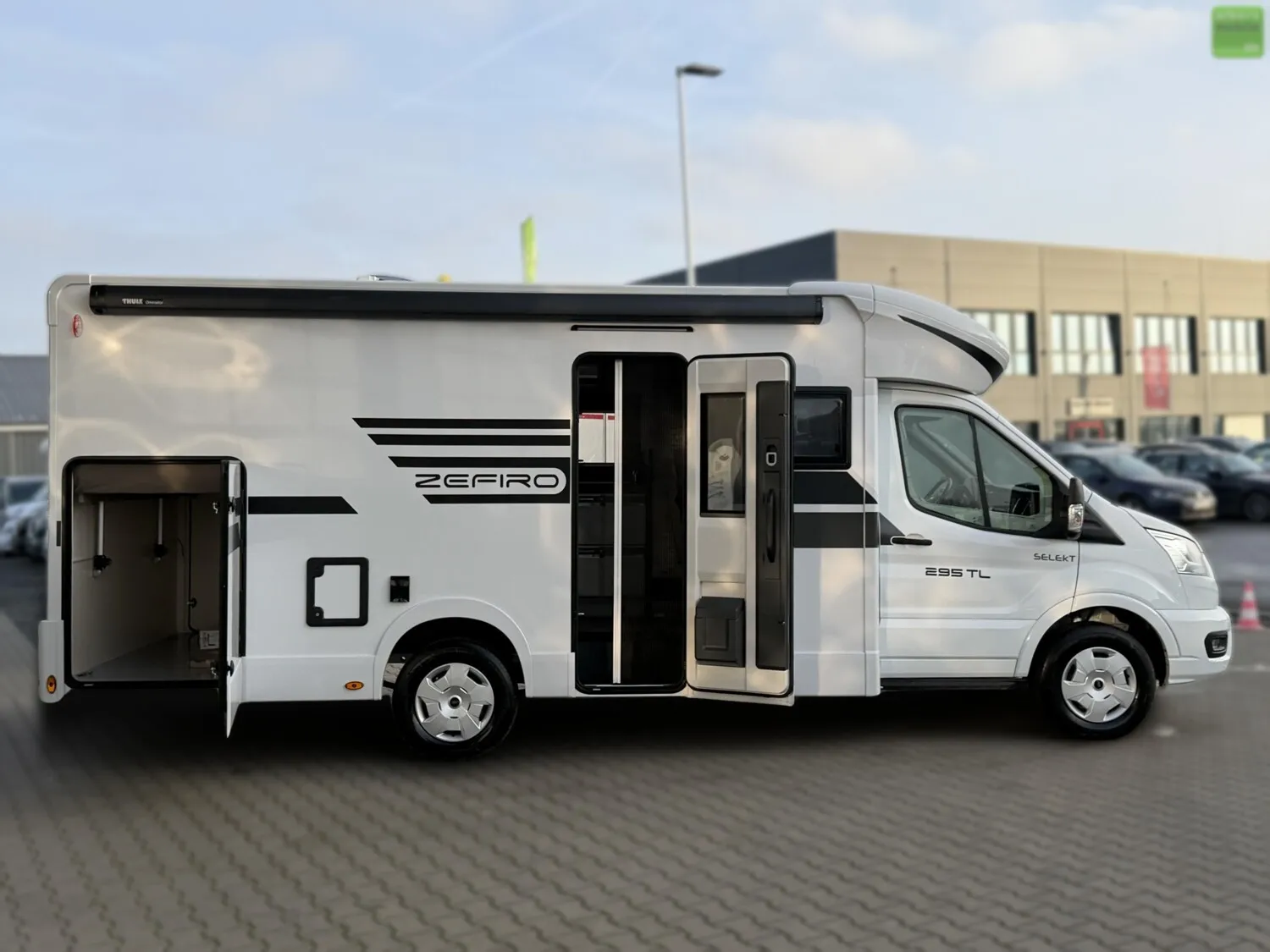 Wir bieten Ihnen einen neuen Roller Team Zefiro 295 TL mit einem Querbett im Heck, Hubbett und einem Automatikgetriebe aus dem Modelljahr 2026.
