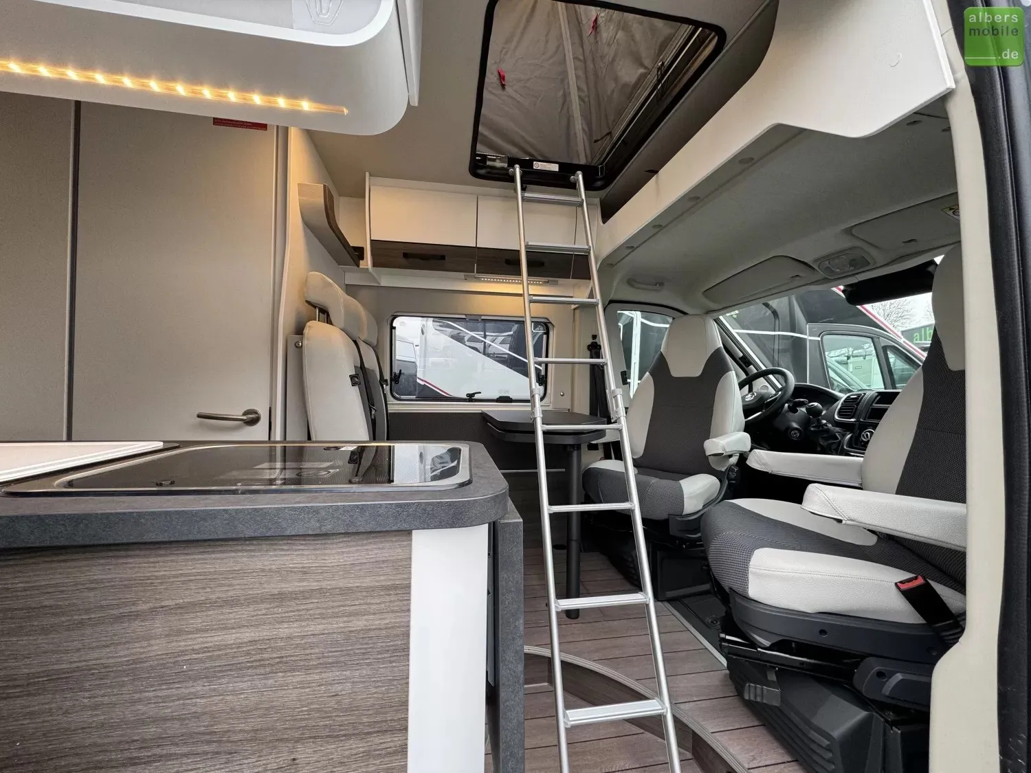 Wir bieten Ihnen hier den VANTourer 600 D mit 140 PS auf einem Fiat-Chassis mit Aufstelldach an.