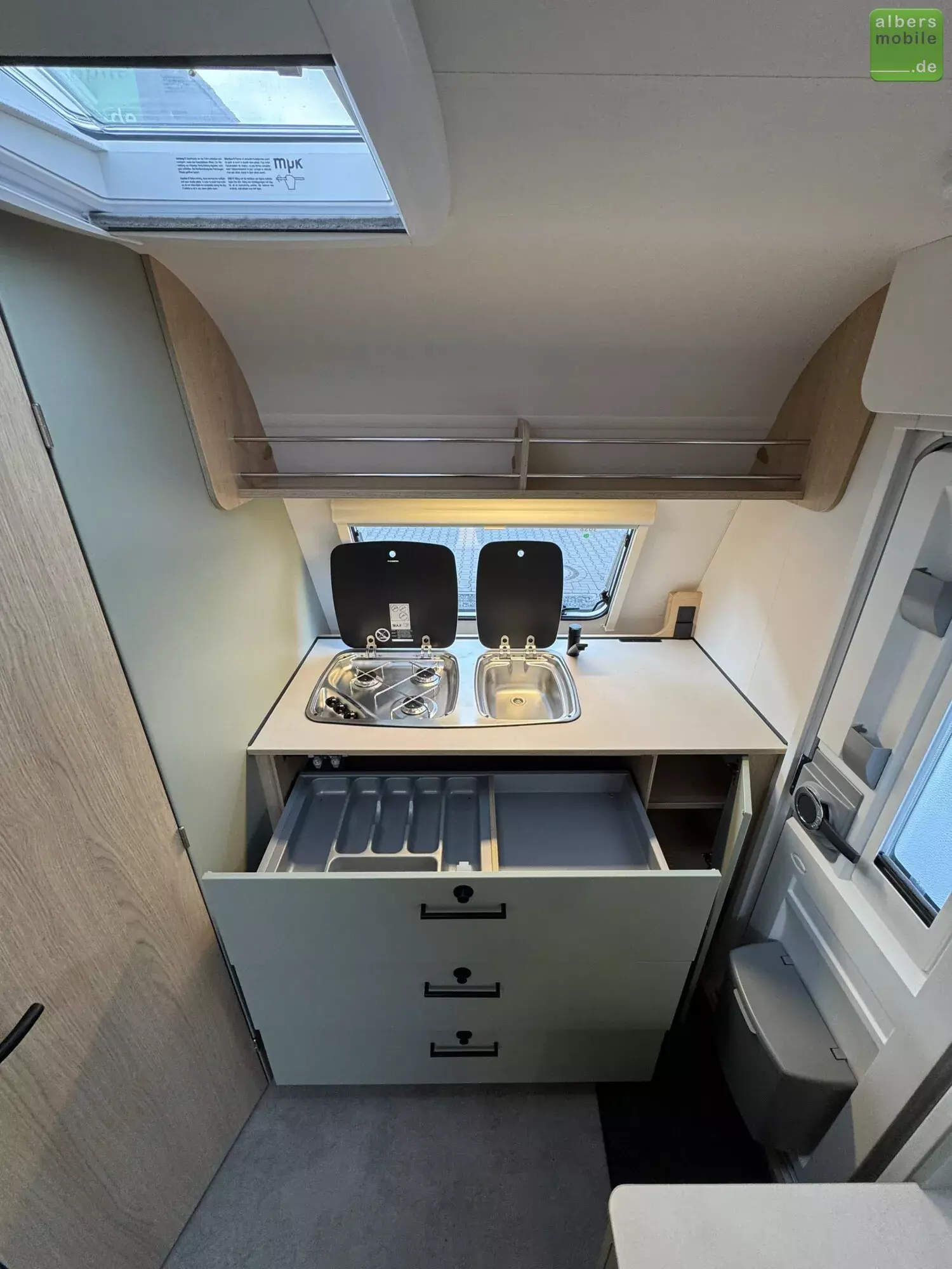 - Dreiflammenkocher mit integrierter Spüle