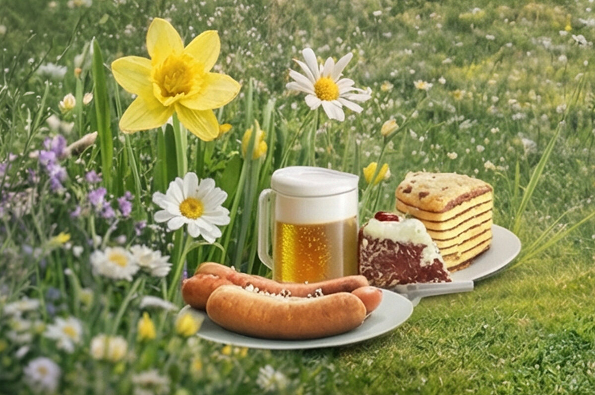 - Bratwurst, Kuchen und Getränke in entspannter Atmosphäre
